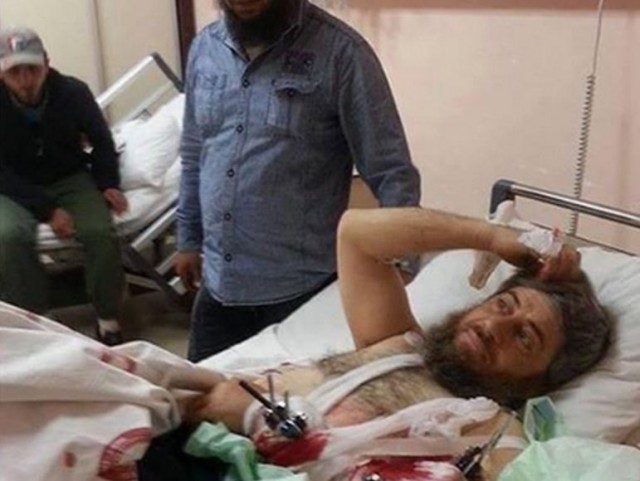 Η παρακάτω φωτογραφία ανέβηκε στο Liveleak και δείχνει τζιχαντιστή που τραυματίστηκε σε μάχη με Κούρδους Πεσμεργκά στο χωρίο Αΐν Αράμπ κοντά στο Χαλέπι της Συρίας.